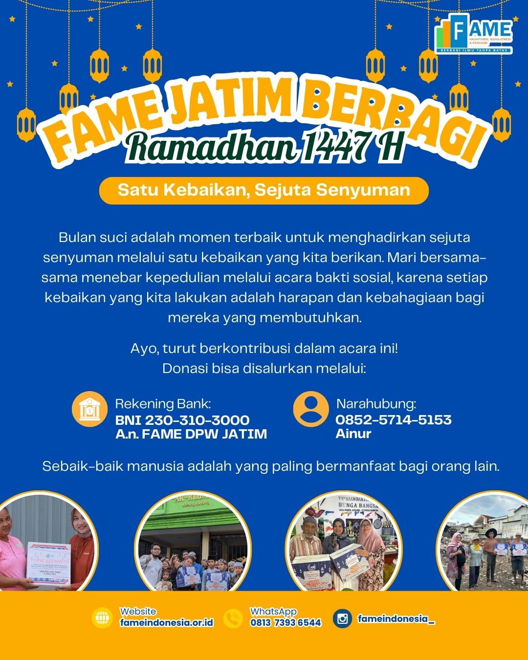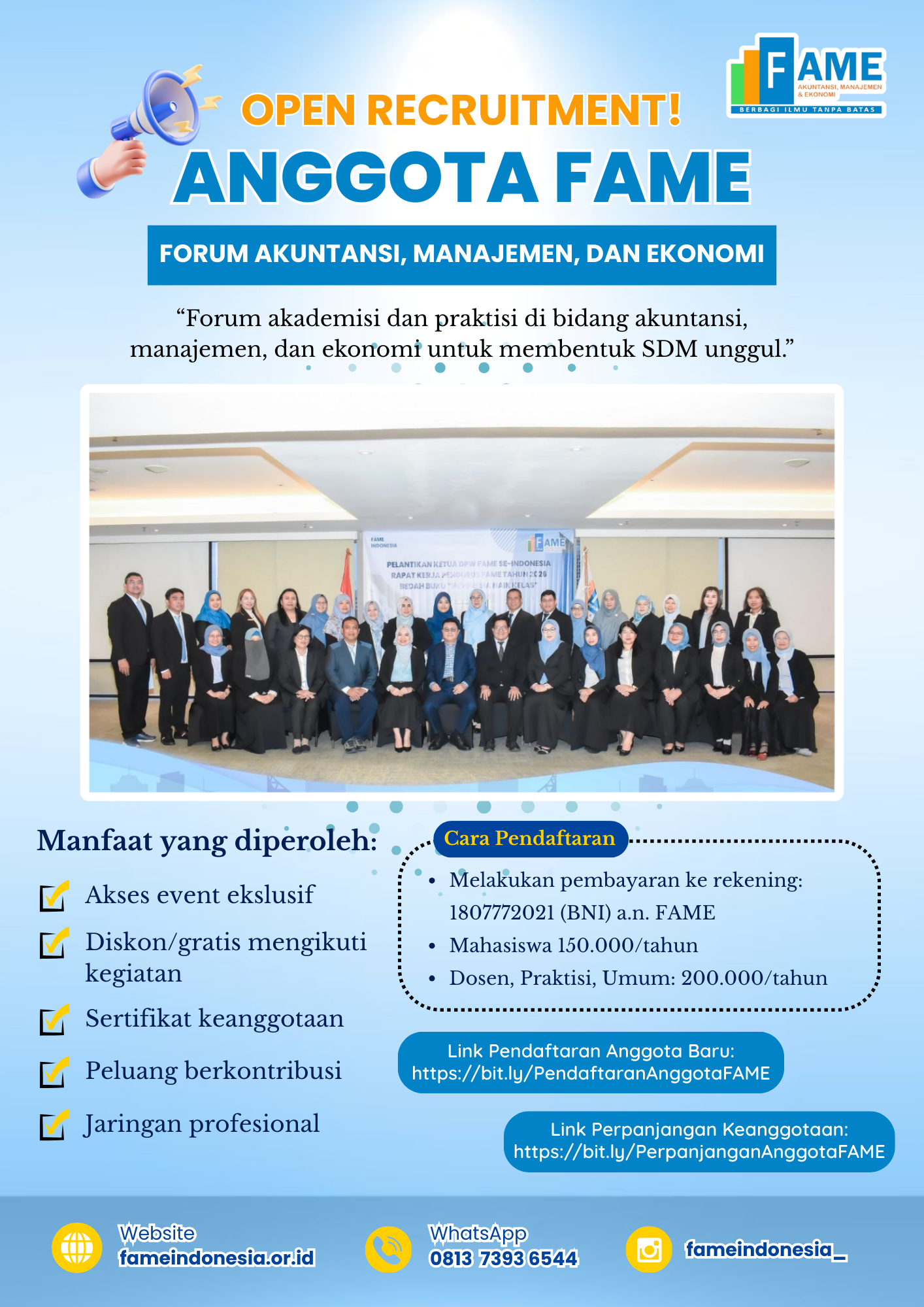 Forum Akuntansi, Manajemen, dan Ekonomi (FAME) merupakan forum akademisi dan praktisi yang profesional dan konsisten dalam membangun SDM unggul.